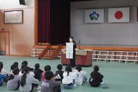 児童代表の作文発表の後に、学年ごとに修了証の授与を行いました。学年ごとに前に並んで、代表児童が受け取る形でおこないました。緊張した様子でしたが、1年間のまとめとして立派な態度で臨んでいました。