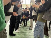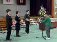 離任式を行いました。年度末の定期異動で3名の先生とお別れすることになりました。児童は10時に登校し、体育館で10時30分から式を行いました。お別れの先生の紹介があって、先生それぞれからあいさつがありました。富吉小で勤務された間に「たくさんの思い出ができて、子どもたちの成長を感じることができた。次の学年でもがんばってほしい。」とお話がありました。お花の贈呈、児童代表あいさつ(5年福地悠生さん)をして、花道の間を歩いての退場となりました。