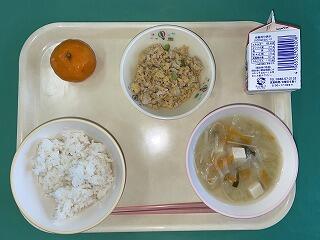 今日の給食:9月19日(月) メニュー【鶏そぼろ丼、千切り大根のみそ汁、冷凍みかん、麦ごはん、牛乳】