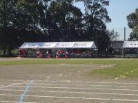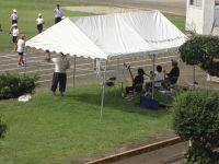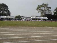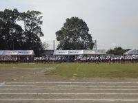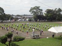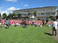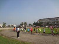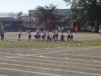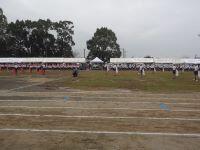 ほぼ予定どおり、開始しました。途中、雨がパラパラと降る時間が短時間でしたがありました。しかし、子どもたちの元気な演技・競技で雨もすぐやみ、予定していた活動を予定どおり行いました。練習の成果も出せました。