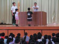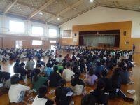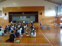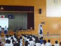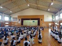 9月18日(木)の午前中、都城警察署の交通指導員の方をお招きして、体育館で学年部ごとに交通教室を行いました。