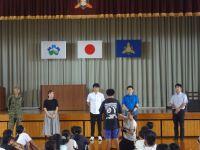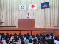 次に、校長先生の話でしたが、「オリンピック」と「地震」に関するお話でした。卓球の早田選手と戦った韓国の選手の態度について、学ぶべき態度だったと話されました。また、8月8日の地震に関して、避難訓練もあるのでもう一度自分たちが取るべき行動を再確認するよう話をされました。