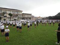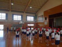 1回目の練習から1週間経ちましたが、子どもたちも要領を覚え、集団行動の仕方がとてもよくなっていました。また、静かに話を聞く態度もよかったです。この調子で、あと2週間の練習をがんばってほしいと思います。