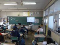①各教室をリモートでつなぎ、社会福祉協議会の方の講義を聞く。