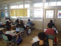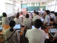 研究授業の後は、授業ごとに分かれて「授業研究会」と「研究協議会」を行いました。ここでは、フィグジャムを使い、それぞれの考えを記入してもらって、研究会や協議を行いました。一貫教育の目的である「授業改善」「一貫教育の推進」ができたのではないかと感じました。話合いでは、「子どもが主役の授業づくり(わさびの授業)」と「ICT活用」について協議ができました。