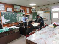 まず、委員の皆さんに全学級の5時間目の授業の様子を参観してもらいました。「どの学級も担任の先生がしっかり授業をしており、子どもたちも学習に一生懸命取り組んでいる。」とお褒めの言葉をいただきました。