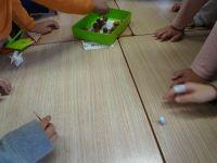 写真のように、指導者から遊び方を教えていただきながら、学習を行っていました。中には、遊びの経験をしている児童もおり、上手にあやとりをしたり、独楽回しをしたりする姿も見られました。