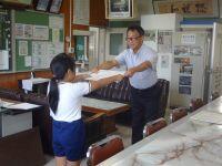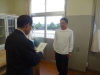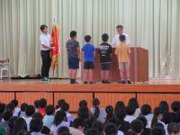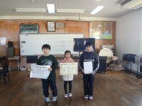 夏休みの作品で、サイエンスコンクールで金賞と銅賞をとった3名の児童の表彰を行いました。
