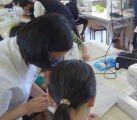 1学期、6年生に引き続いて、2学期(11/6)も高城高校の生活文化科の先生や生徒さんたちの協力により、本校5年生が家庭科のエプロンづくりの学習を行うことができました。担任が一人でミシンの学習を行う際には、ミシンの不具合などにより、担任がその対応をしていると、なかなか学習が進みません。