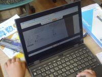 次に、算数の授業です。単元名は「1けたをかけるかけ算の筆算」で、めあては、「十の位にくり上がるひっ算の仕方を考えよう」でした。計算の仕方を理解し、プリントやタブレットで問題を自分のペースで解いていました。