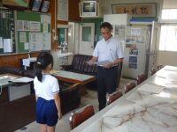 次に、サイエンスコンクールの地区審査で特選から佳作までを受賞した7名の児童の表彰を行いました。写真は、その一部の様子です。