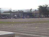 ③運動場への避難の放送を受け、運動場へ二次避難を行う。