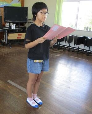 始業式は、残暑も厳しいので、熱中症の予防対策をとり、Meetで行いました。児童代表のことばでは3名の児童が発表しました。2年生の管松和瑚さんは、頑張りたい4つのこととチェレンジする2学期にしたいこと。4年生の福榮結愛さんは、1学期を振り返って目標を立て成長していきたいこと。6年生の野﨑優里さんは、4つの目標と最上級生としての役割や責任を自覚し努力したいという内容でした。3人ともしっかりと目標をもっって2学期を迎えることができ素晴らしいです。