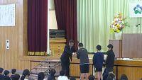 修了式の流れは、①修了証授与、②作文発表(3年)、③校長先生の話、④校歌斉唱、⑤表彰、⑥生徒指導に関する話 でした。