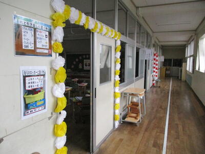 8日(金)に4~6年生が準備を行い、学校を教室を、会場の体育館をきれいに飾りました。