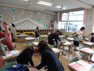 1年生は、学校に行きたくない様子で、お父さんとお母さんも困っているようでした。