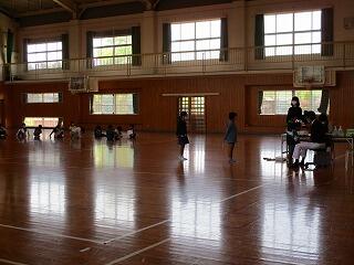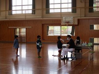 保健室で行うこともありますが、できるだけ広い場所で換気をよくして、スペースを取り、実施しています。