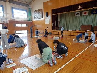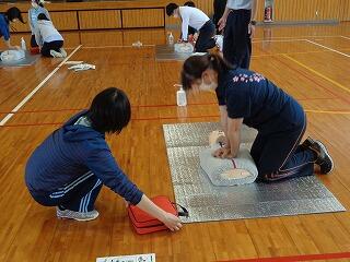 5月2日(火)放課後、体育館で心肺蘇生とAED使用の研修を行いました。