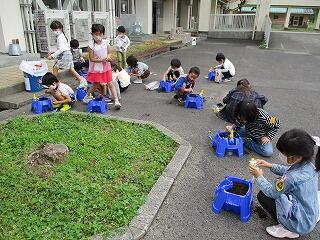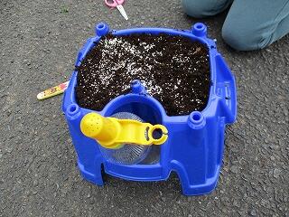 今度は1年生が、アサガオの種まきです。