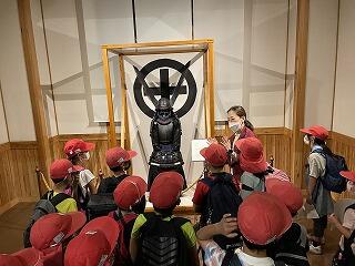 城の中に入ると、刀や鎧、昔の道具を見せていただきました。