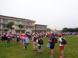 保護者の皆さんには、一旦帰宅いただいて、風水害による引き渡し訓練を実施しました。