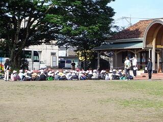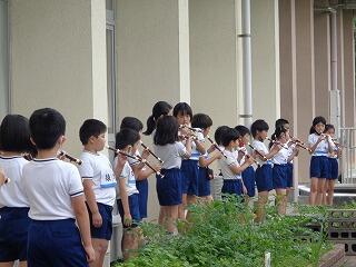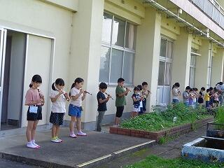 今日も、運動場に向かってリコーダーの練習に励んでいます。
