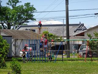 学年と時間をそれぞれ2つに分け、また遊ぶ場所も固定し、感染対策を取りながら実施しています。