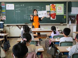 2年生 学級活動「もぐもぐ給食」(給食センターの栄養士さんを講師に迎え)