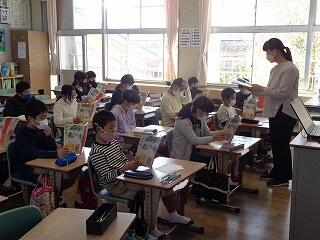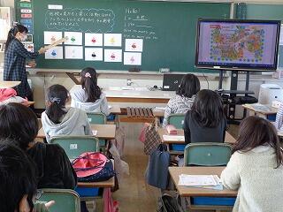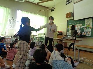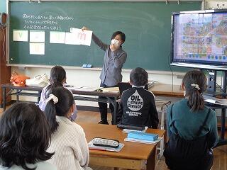 都城市の国際交流員3名に来ていただき、1・2・5・6年生とそれぞれ1時間ずつ交流を図りました。