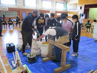 5・6年生に、お手伝い、見守りをしてもらいながらも上手に準備しています。