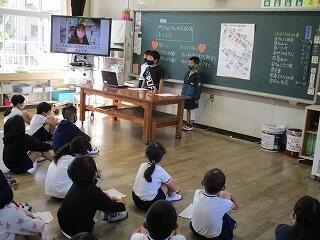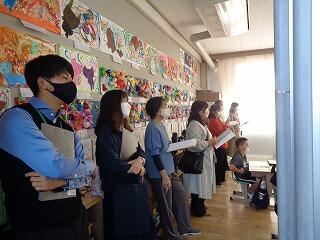 鑑賞の学習でした。英語で自己紹介した後、それぞれの作品の感想を述べていました。
