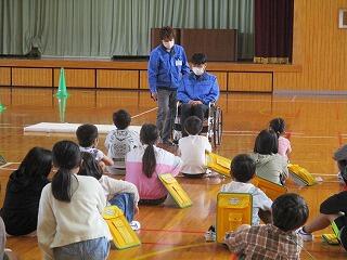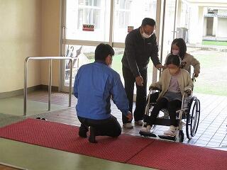 社会福祉協議会を中心に、地域の公民館長さんや民生委員さん、車イスのレンタル会社の方の御協力のもと、体験を行いました。