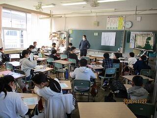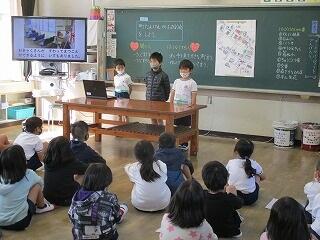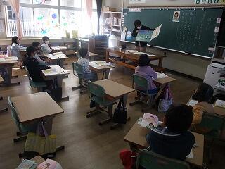 授業は、1年生道徳「はしのうえのおおかみ」、6年生理科「「大地のつくりと変化」です。