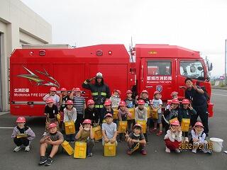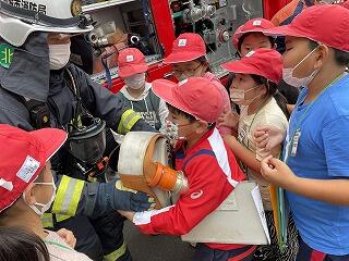 消防署では、消防車と救急車を見せてもらい、道具の説明を受けました。