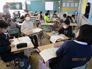 11月9日(水) 石山小学校、高城中学校の先生を招いて本校で授業研究会を開催しました。