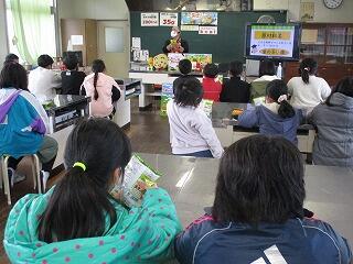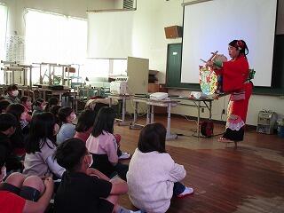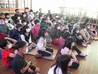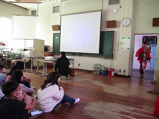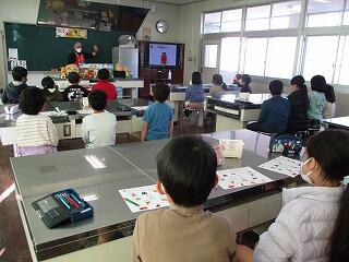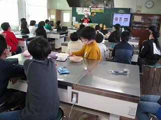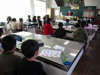 宮田さんの話が始まると、児童は夢中になって聞いていました。宮田さんが何かしゃべると「えー!」の連発でした。