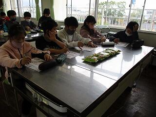 1年生には、お菓子を1つ食べて、入っている材料を当てていました。味はもちろん、色にも注意して観察しました。
