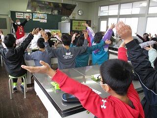 講師の方のリズムよく、歯切れのいい話にどの学級も夢中になっていました。またどの学級も姿勢がよいと褒めていただきました。