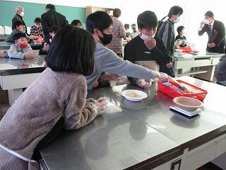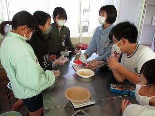 5年生は、1日に一人が摂ってもよいおやつの量を、ポテトチップスで考えて皿に盛りました。35g、200kcalを実感できたようでした。