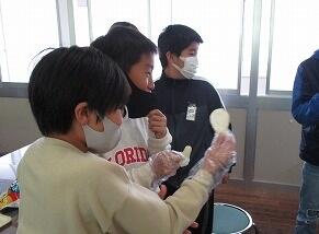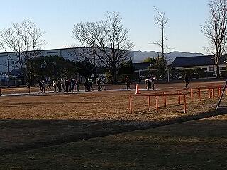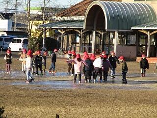 6年生を中心に水たまりの氷で滑って遊んでいました。所々、穴は開いてしまいましたが、スケートのように上手に滑っていました。