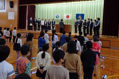 4月25日(火)に朝の活動で登校班会、1校時に見守り隊の方との対面式がありました。見守り隊の方との対面式は4年ぶりの実施です。久しぶりに、見守り隊の方と子どもたちが、実際に対面しての式ができてよかったです。対面式では、まず全児童に隊員の皆様から自己紹介をしていただきました。その後、地区に分かれての顔合わせでした。新1年生の紹介や隊員の方からお話をいただき、和やかに楽しく会を進めることができました。児童は大変お世話になっていることも感じたようでした。