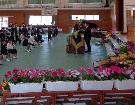 また、4月11日(火)には、新たに72名の新入生を迎えて、入学式が行われました。コロナ禍の中、これまで規模を縮小して実施して参りましたが、今年度は、6年生も参加して入学式ができました。式の中で、名前を呼ばれた新入生の元気な返事を聞くことができました。入学を楽しみにしていた様子が元気な返事や笑顔からも感じられました。入学おめでとうございます。
