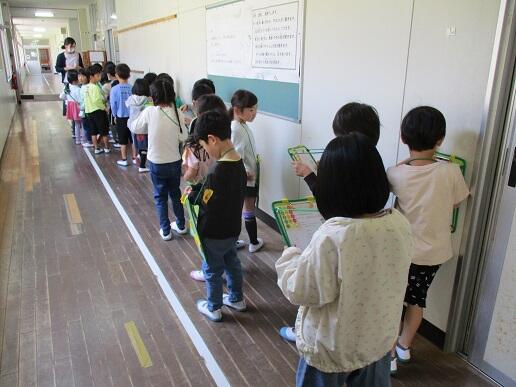 入学してからの1ケ月で1年生も少しずつ学校生活に慣れてきたところです。今週火曜日(4月25日)は参観日があり、参観授業で頑張っている姿を保護者の皆様にご覧いただきました。そして、27日(木)、2校時に学校探検をしました。これまで、教室や運動場、体育館で学習したり、運動したり、遊んだりしています。南校舎(管理棟)には、なかなか行くことがないので、子どもたちは、今回の学校探検を楽しみにしていたので、とても興味深かったようです。事務室や校長室、職員室・・・いろいろな教室があることを知りました。また、学校にいろいろな人が勤めていることにも気付いたようです。笑顔で楽しく学校探検ができました。