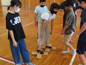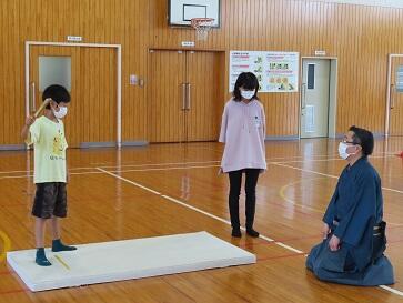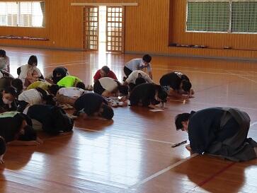 謡を担当しました。初めての歌詞や動きでしたが、約1時間の練習でずいぶん上手になりました。最後は、正座してお礼を言って、ワークショップが終わりました。