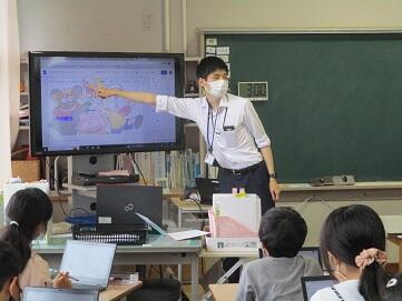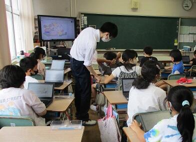 都城市には、ICT支援員の方が配置され、高城小学校でも、竹村さんに月に1~2回来校していただいています。授業での子供たちへの指導・支援や、職員への研修等を行っていただいているところです。専門的な立場から教えていただけるので、とても助けられています。