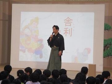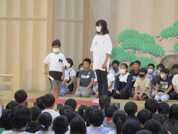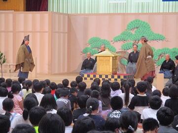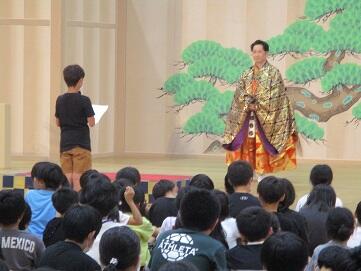 最後に「舎利」を鑑賞しました。能面をつけての場面もあり、大変迫力がありました。初めて観る児童がほとんどでしたので、今回の鑑賞教室が、我が国の伝統文化に関心をもつきっかけになればと思います。最後の6年生お礼の言葉には、そのことがしっかりふれられていました。貴重な経験ができた1日になりました。