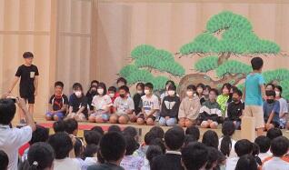 第2部は6年生がワークショップで練習した「謡」と「仕舞」を発表しました。とても上手に発表でき、保存財団の方も驚かれていました。舞台も大変立派なものでしたので、6年生は、よい思い出ができました。