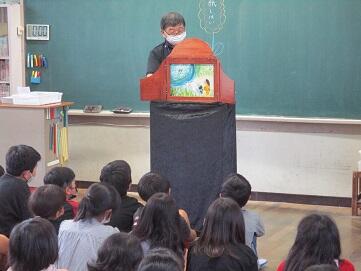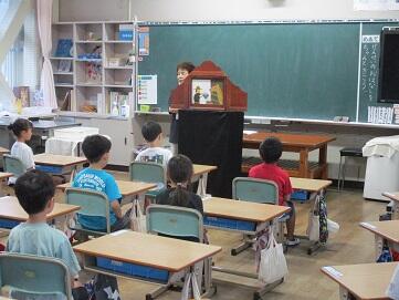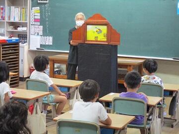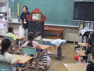 6月27日(火)は、1年生全クラスと4年生と5年生の1クラスずつが紙芝居、そして5年1組が読み聞かせの時間でした。日本の昔話や童話などでしたが、子どもたちはお話に夢中になっていました。