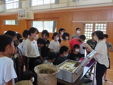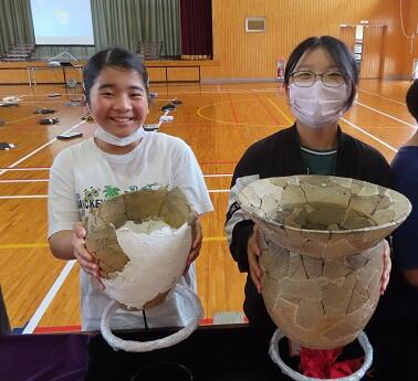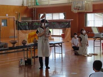 6月28日(水)、6年生は埋蔵文化財保存活用整備事業で、縄文時代と弥生時代、古墳時代について学習しました。今回の学習では、都城で発掘された土器に触れたり、田植えで使っていた田下駄を履いてみたり、多くの児童が体験することができました。歴史の学習に興味・関心のある児童は多いですが、今回の学習のように昔の人が作った物や生活を実際に体験することで、さらに歴史の興味・関心を高めたようです。
