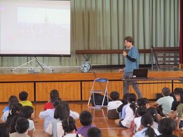 9月29日(金)に3名の国際交流委員の方が来校され、1校時に1年生、2校時に2年生、3校時5年生、4校時に6年生がそれぞれ1時間ずつ国際交流活動を行いました。1年生と2年生は、1学期に続いて2回目の国際交流活動でした。前回も3名の国際交流員が来校されましたが、1名の方が変わられていました。まず、自己紹介から始まりました。今回、1・2年生は、楽器や歌、踊り等を中心に、5・6年生は、それぞれの国の紹介やゲーム等についてでした。今回も子供たちは、とても楽しそうに元気に活動していました。1・2年生は、国際交流員の方の名前も覚えていて、大変喜ばれていました。またお会いするのが楽しみです。